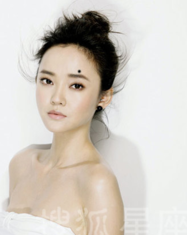 女左眉头上方有志