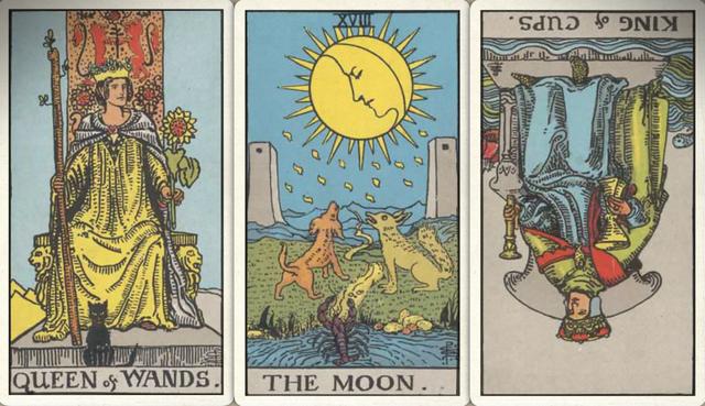 卜牌:权杖皇后+ 月亮+ 圣杯皇帝-