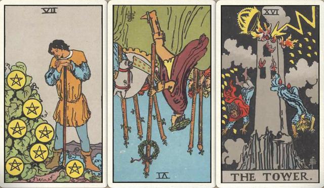 卜牌:星币七+ 权杖六- 高塔+