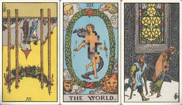 卜牌:权杖四- 世界+ 星币五+