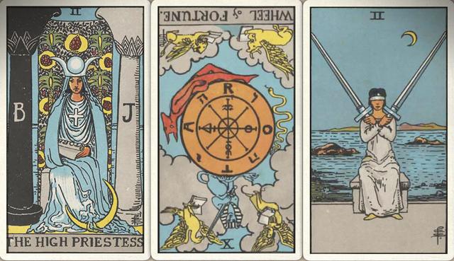 卜牌:女祭司+ 命运之轮- 宝剑二+