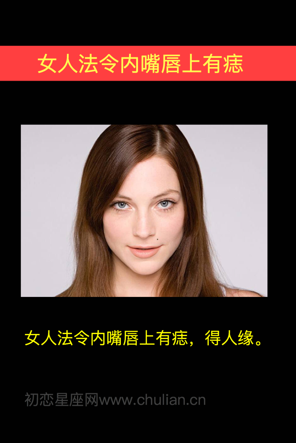 但是其本人可能在事业上却毫无建树,安稳度日这可能就是所谓的有得必有失的道理 女人右嘴角上有痣,有两种含义,一种是食痣,一种是美人痣 食痣也有两种含义,一种是代表着衣食无忧能聚财,是福痣,另;依据相术学的说法,如果一个女人左边嘴角上方长有一颗黑痣,且这颗黑痣外形美观,那么这颗痣则是聚财痣,能够提升一个女人的聚财能力,能够让一个女人此生的财运亨通,衣食无忧总的来说,左边嘴角上方长痣,乃是衣食无忧的;1嘴唇上有痣 这是情色欲望的象征,容易招惹桃色纠纷,或者陷入多重混乱关系 2上嘴唇有痣对爱冲动 上嘴唇有痣的人,对性爱追求激烈,旺盛,爱情上会主动追求心仪对象,感于表白自己的内心感受,不喜传统的礼教束缚。