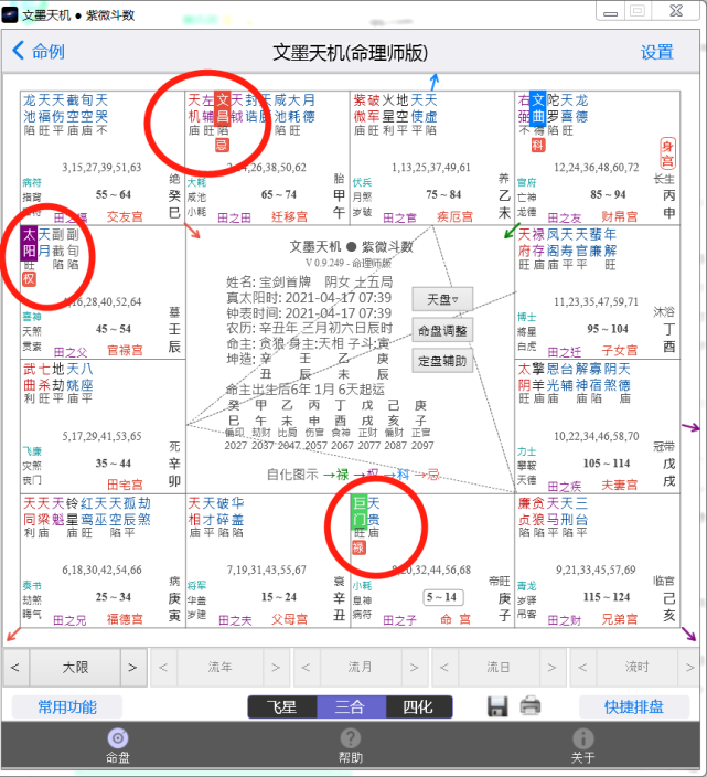 从命盘来看,重点宫位在巳,正是先天命宫,紫微七杀自坐本宫,在个性上来说,将会带有自尊和义气的性质,文昌文曲天魁等吉星三合拱照,意味著学习反省等态度也会增强,而擎羊再会入本宫,则会推升突破的优点 这些星曜和格局。