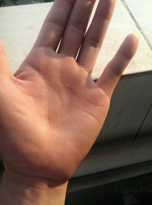 3、如果其中的感情线和智慧线合二为一,变成一条掌纹线横贯手掌,这就是真断掌了,手相中将这种掌纹称为“通贯手纹”。