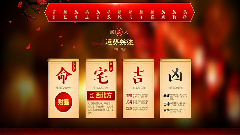 今年丙辰年的龙五行为土,被太岁马的火所生,虽然还不错,但是容易招惹烂桃花,尤其是被太岁所生,外力使然,容易遇到桃花劫,导致与夫妻情侣之间产生诸多的误会,严重者甚至出现分离之事的发生。加上今年天中煞的影响,很容易因情而破财被骗。天中煞在生肖龙命宫内不仅仅影响催财旺财挣钱,还影响破财被骗偷盗之事,非常的不利。