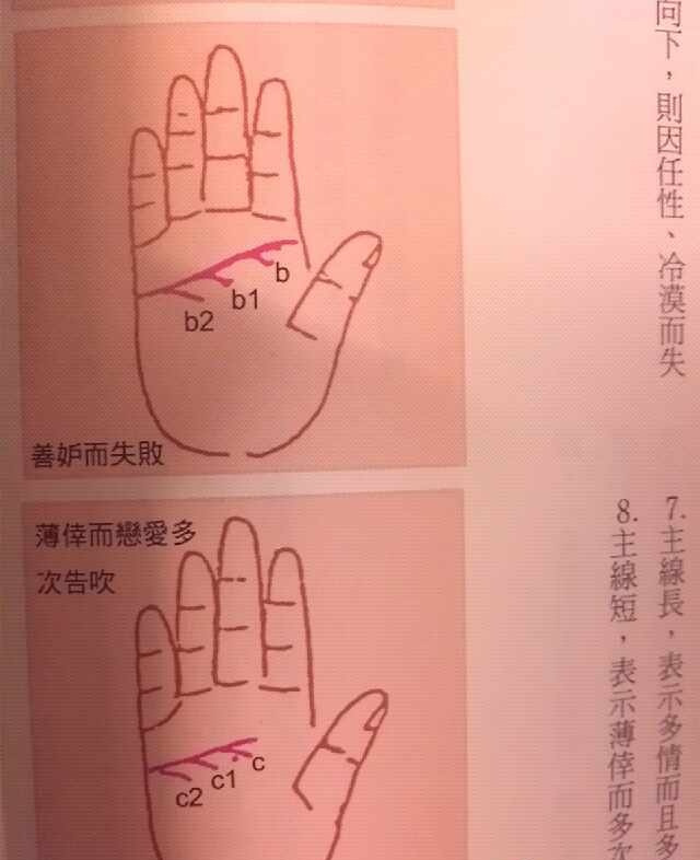 根据相术学理论,手掌上有生命线智慧线感情线三大主线其中生命线主人的寿命和健康状况智慧线主人的智慧和财富,也从中可看出人的性格和事业情况而从感情线则可以看出人的感情运势,对婚姻情况也可窥见一斑说到这儿。
