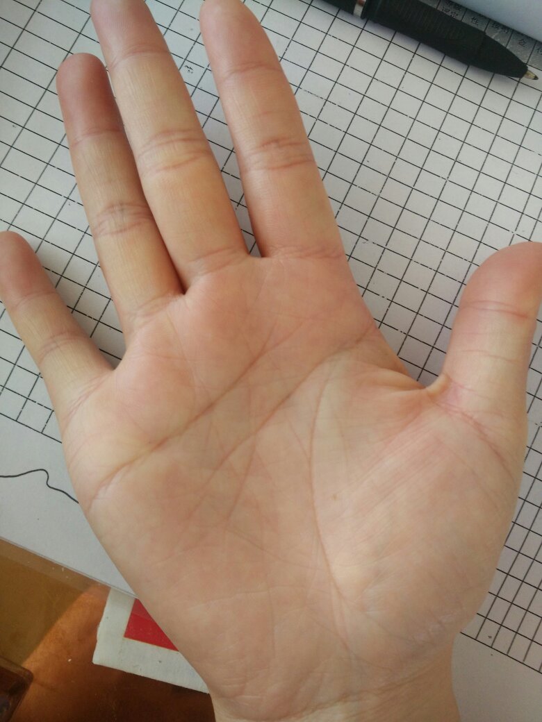 5、就是说并不是说你的手纹乱而是说你的手中的纹路本身是比较多的这种手相乱是比较好的还有一种就是手中没有意义的杂纹比较多病理纹多,这种乱的手相是比较不太好的,这表示身体不健康,手中的乱纹越多表示自己以后。