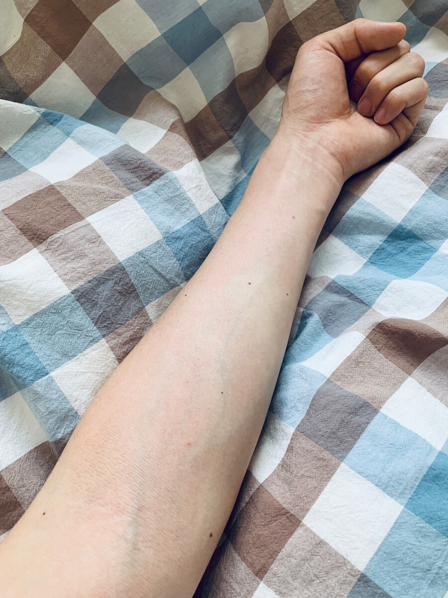 女人的手臂一对痦子