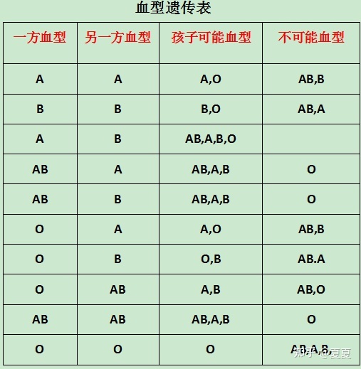 12、子代也是O型,子代也是O型,亲代是O型或AB型,则子代为A型或B型子代为A型或B型子代与母亲血型不合可引起新生儿溶血病因为人类有23对染色体,N对遗传基因,所以对应的根据每一对基因的不同,每个人的遗传特性也不一样。