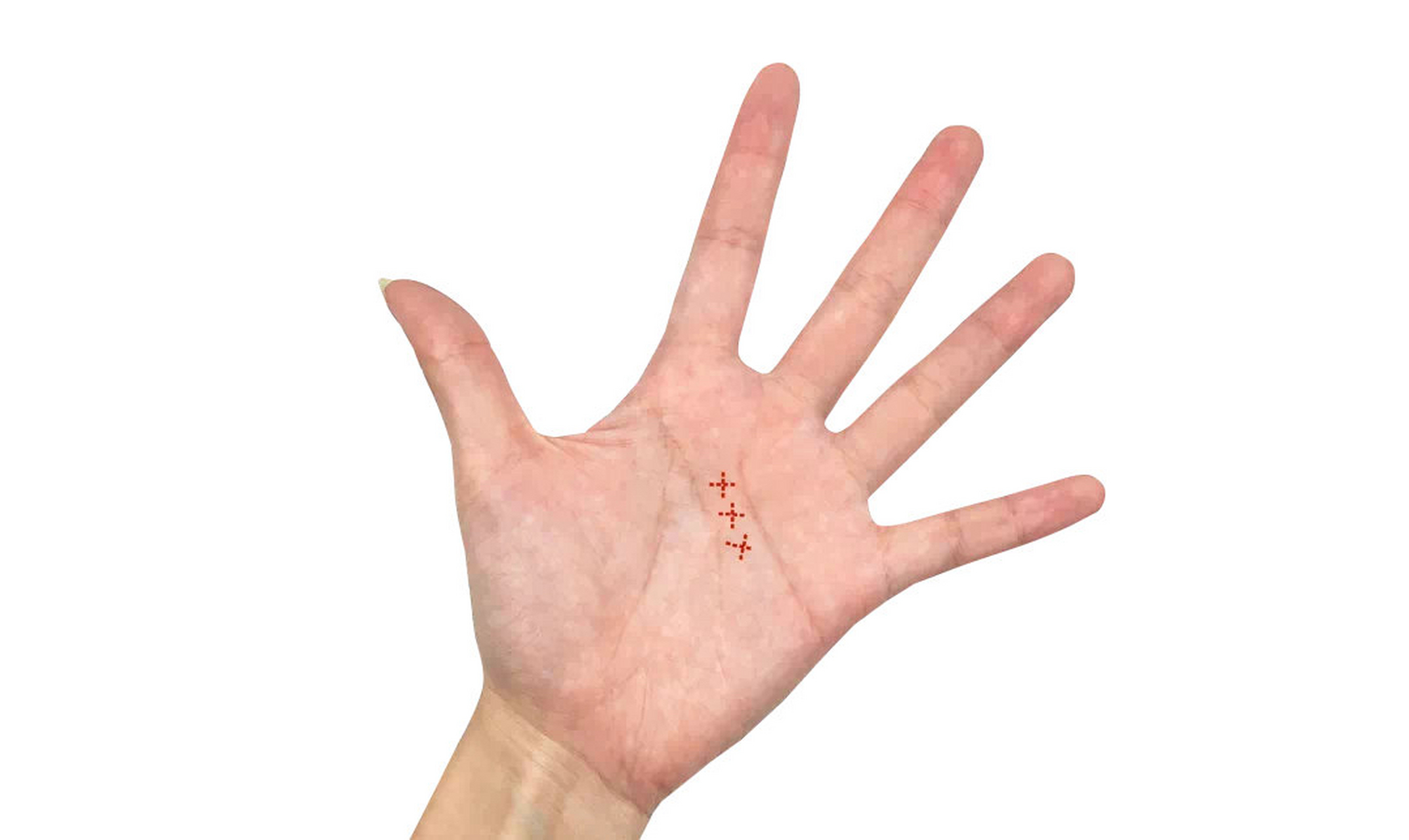十字纹即在天纹线即感情线与人纹线即智慧线之间手掌的中间部位的十字纹由于此纹正处在手心部位,与“心”紧密相联,加之“十字”之象在人们心目中具有约定俗成的特殊的内涵,故在现实生活中,手相中有十字。