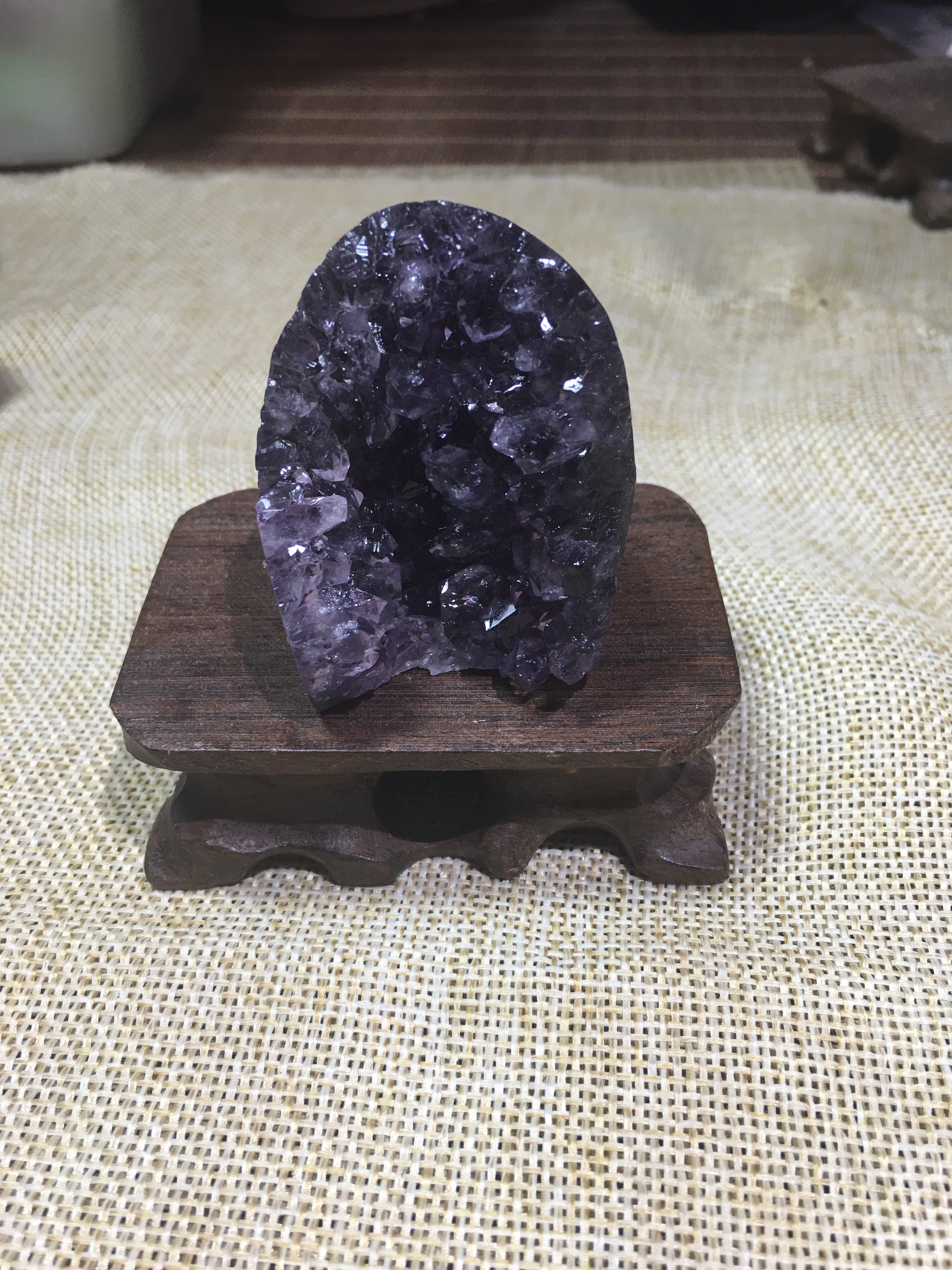 紫水晶的频率对应人体七轮中的眉轮和顶轮将紫水晶球摆件放在书桌灯光照射到的范围内,不仅能够开发智慧有助思考,还能镇定安神平心静气,集中学生的注意力,使人更专心在益智方面,紫水晶球非常的适合上班族和念书的。