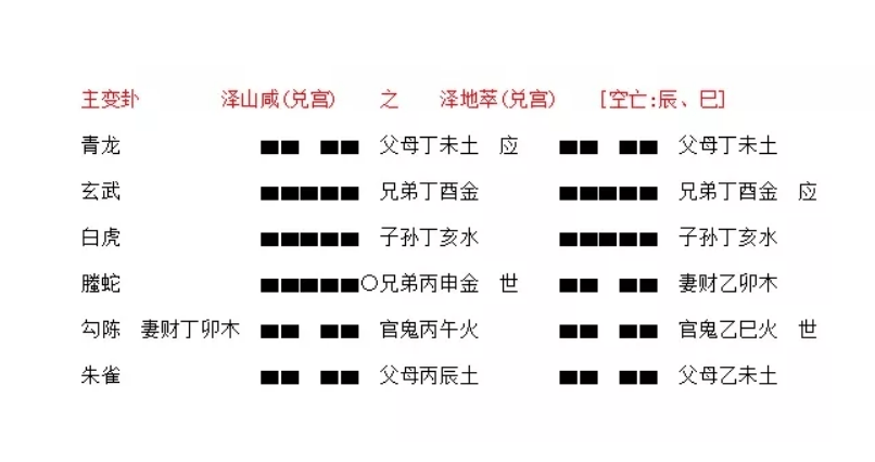 12、我觉得这个卦是泽山咸卦,是婚姻,感情方面的卦,五爻动,变卦雷山小过,将出现危机,仅供参考。