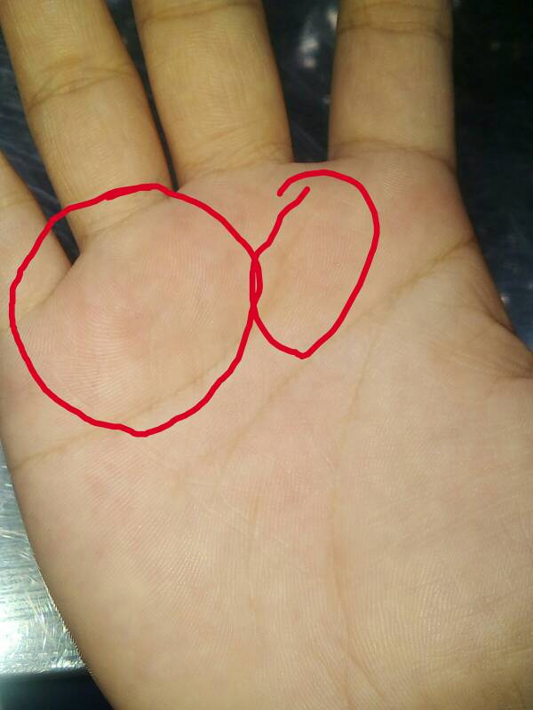 这个部位在手掌的侧面,要侧过来才能看准确 10疲劳纹 在食指根部生命线起端以上的这个区域如果出现纹路,代表此人的身体的抵抗力弱,易疲劳, 没精神,如果是井字纹,则说明疲劳的时间已很长了另外,这个部位低平但是有纹路的。