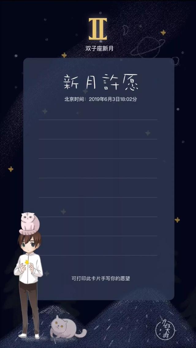 (处于国外的人可以换算成北京时间来进行许愿,但请注意,务必在新月开始后才可以许愿,提前许愿视作无效。)