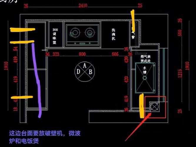 接下来考虑厨具的摆设。如果有用到微波炉或电锅,应置于你的四个吉方之一。电锅和微波炉的插座也应位于吉方。同样的原则也适用于烤面包机和闷烧锅等。