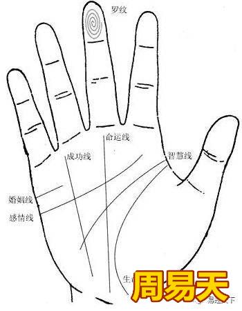 3感情线从坤位外侧下方走弧行之线走到中指中垂线处,标准的感情线光滑明晰,代表心脏呼吸视神经功能性关系等4命运线也叫玉柱线 ,手掌地丘正中向上生出直行至中指方向之线,称命运线此线与遗传有。