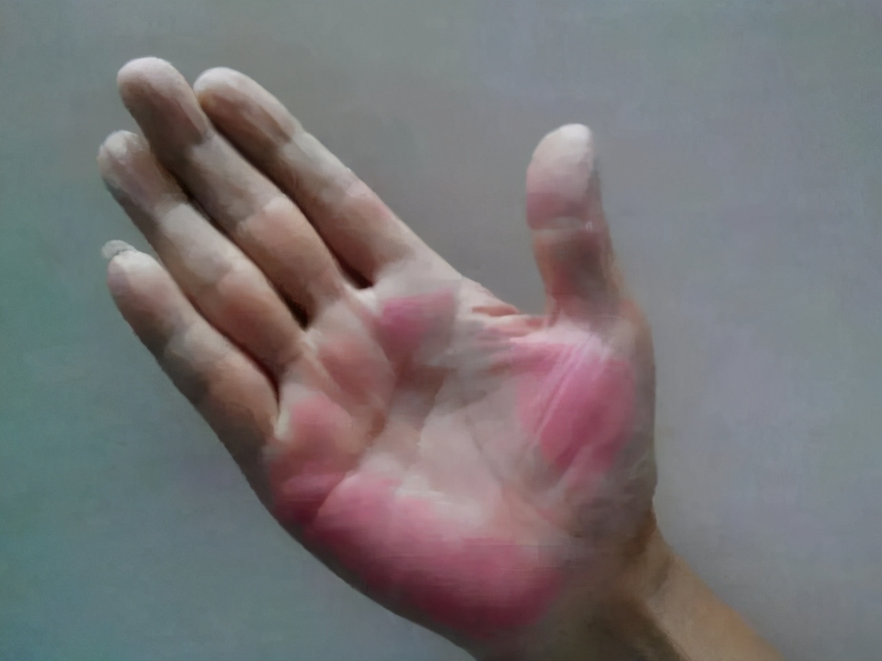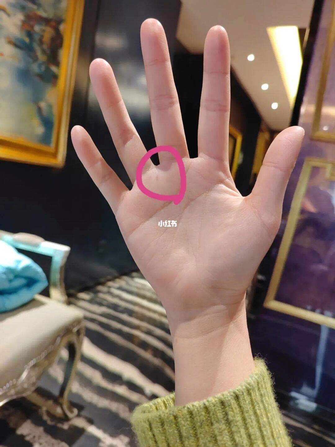 男孩右手掌有颗红痣