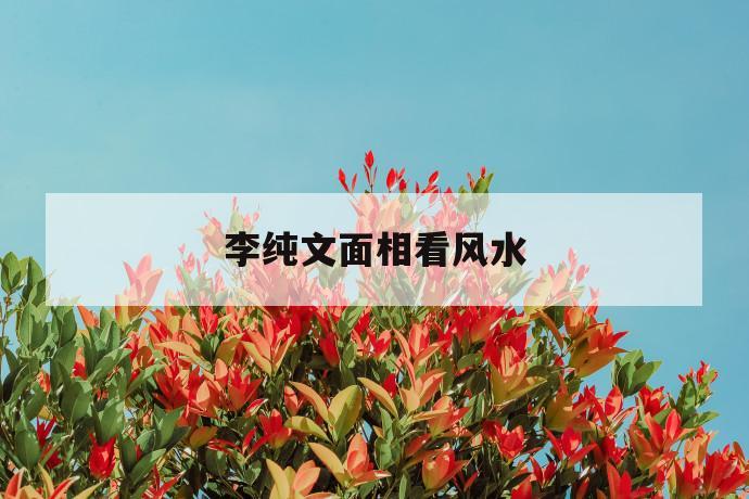 李纯文面相看风水的原理